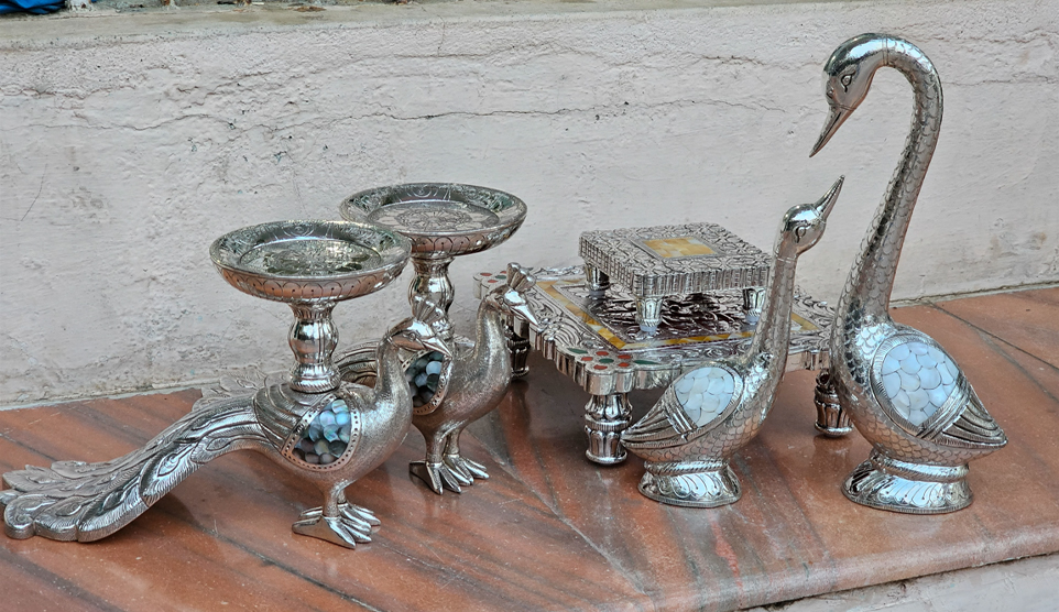 Crafted with precision and purity, Mateshwari Silver Palace brings timeless elegance through pure silver cladded and silver-plated articles. Rooted in tradition and refined by modern techniques, our creations reflect trust, beauty, and lasting value.